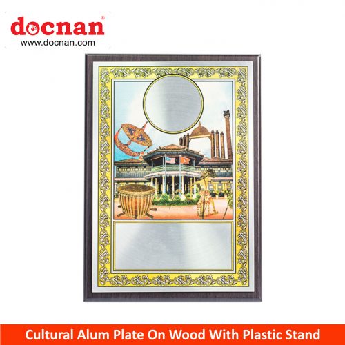 Cultural Alum Plate On Wood With Plastic Stand (Kelantan)