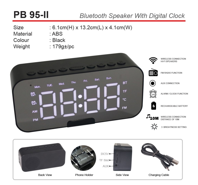 PB 95-II Bluetooth Speaker with Digital Clock