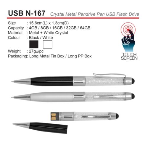 USB N-167 Crystal Metal Pendrive Pen USB Flash Drive